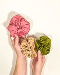 Ce coffret contient le matériel nécessaire pour la confection de 3 chouchous, ainsi qu’un lien pour visionner les instructions pour les coudre à la main, étape par étape.