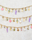 - Several charms made of stainless steel, freshwater pearls, glass beads